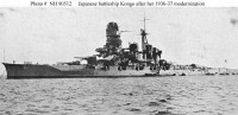 Το θωρηκτό Kongo το 1937, μετά τις μετατροπές που υπέστη. (U.S. Naval Historical Center Photograph).