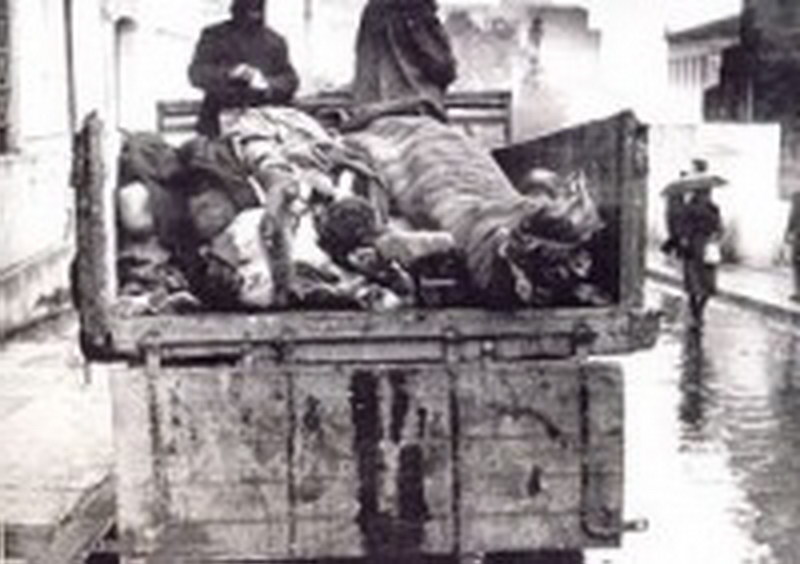 Συλλογή πτωμάτων στους δρόμους της Αθήνας τον χειμώνα 1941-42 (πηγή: Εθνικό Μουσείο)