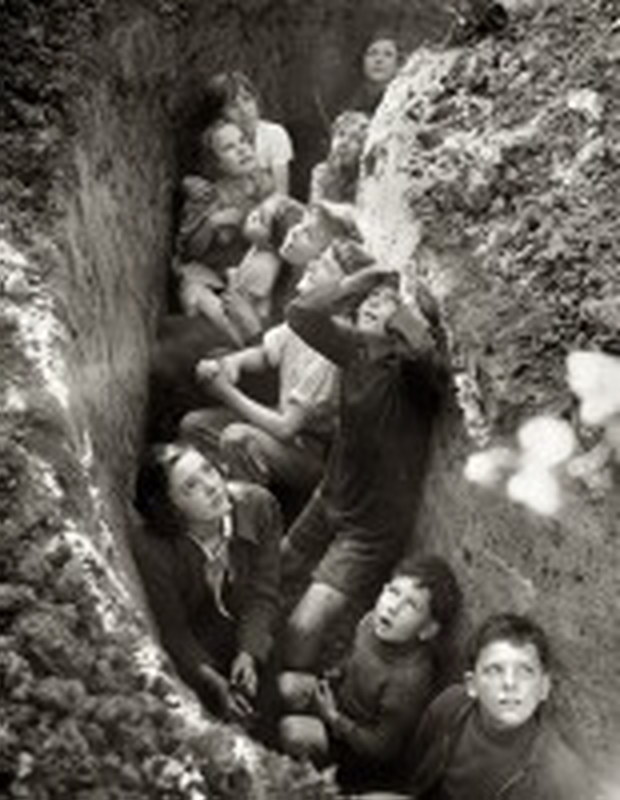 Παιδιά προστατεύονται κατά τη διάρκεια βομβαρδισμού στη Βρετανία